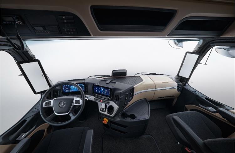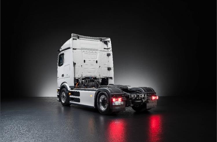 Ciągnik siodłowy eActros 600 to na razie prototyp, ale jego możliwości robią wrażenie. Wyposażony w baterię 621 kWh, oferuje teoretyczny zasięg do 500 km. Standardowo posiada złącze CCS2 umożliwiające ładowanie z mocą 400 kW, a złącze MCS będzie dostępne za dopłatą, również do starszych modeli.